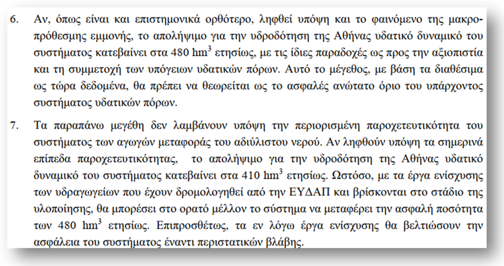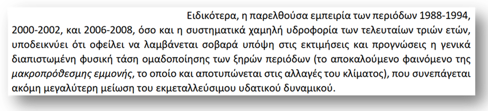 Υπ’ αυτή την έννοια, ορθώς, κατά τη γνώμη μου, το Σχέδιο Διαχείρισης του Υδροδοτικού Συστήματος του 2023-24 παρατηρεί: