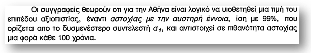 Με λίγα λόγια, το επίπεδο διακινδύνευσης 1% (αξιοπιστία 99%) που είχαμε ορίσει ως αποδεκτό, τριπλασιάστηκε στο 3% (αξιοπιστία 97%). Κατά τη γνώμη μου αυτό, που χαρακτηρίζεται ως αποδεκτό, απλά δεν είναι αποδεκτό για μια πόλη όπως η Αθήνα.